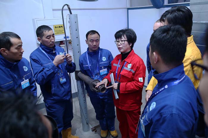 2017年11月10日,在河北廊坊举行的中国工会“一带一路”人文交流——上合组织国家职工技能大赛比赛前,裁判向选手们讲解注意事项。 新华社记者张铖 摄