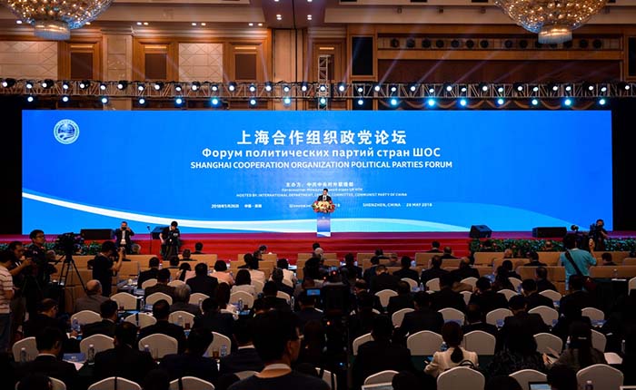 2018年5月26日,首届上海合作组织政党论坛在中国的经济特区深圳举行。 新华社记者毛思倩 摄