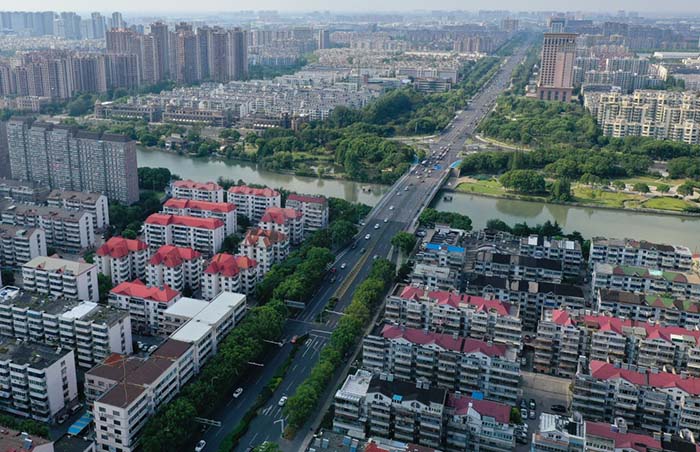 无人机拍摄的昆山城市景色(8月26日摄)。 新华社记者季春鹏 摄