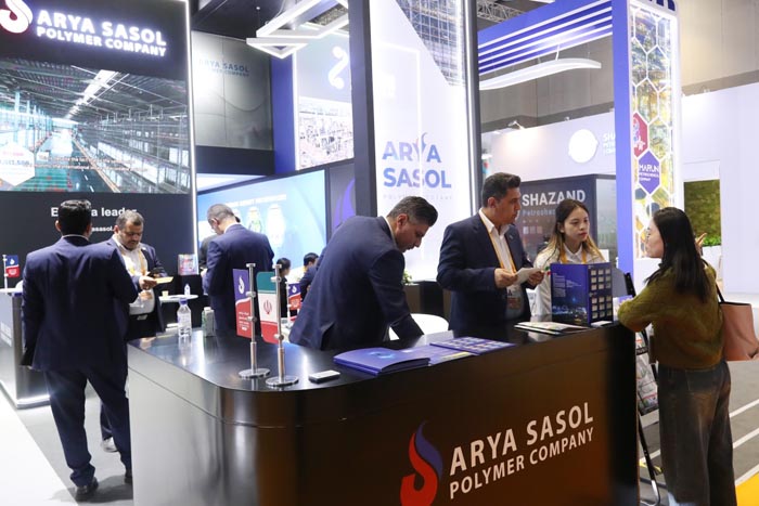 11月7日,参观者在第六届进博会技术装备展区的伊朗石油化学和工业公司展台与展方工作人员交流。 新华社记者方喆 摄