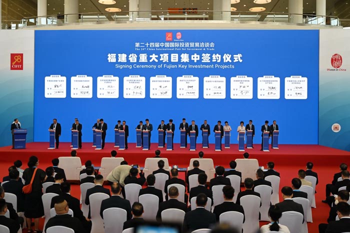 这是在第二十四届中国国际投资贸易洽谈会现场举行的福建省重大项目集中签约仪式现场(9月8日摄)。 新华社记者林善传 摄