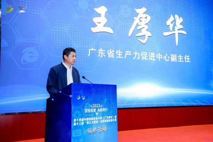 王厚华在讲话中指出,省生产力促进中心作为大赛承办单位,始终围绕省委“1310”工作部署,秉持“政府搭台、企业唱戏”理念,将大赛打造为培育新质生产力、推动创新创业高质量发展的重要平台。他表示,中心已逐步构建起以常规赛为核心、多项行业赛事为支撑的“1+N”科技创新创业赛事体系,并持续优化评审流程,设置多地赛区,确保赛事公平公正。在后续服务方面,中心通过举办“国赛集训营”、联合中国银行开展“银企投贷联动直通车”等举措,为企业提供展示、融资、转化等全方位支持。未来,中心将继续携手各方,构建“创新有活力、资本有回报、发展有后劲”的良性生态,助力更多创新创业企业在广东茁壮成长。