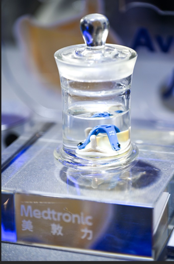 美敦力Medtronic展台展示的中国首展人工心脏瓣膜。(魏尧摄)