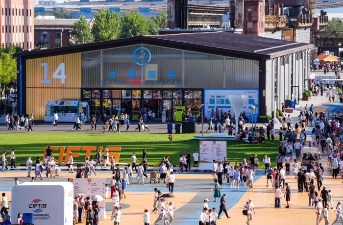 9月14日,人们在北京首钢园2025年服贸会展馆间行走。新华社发
