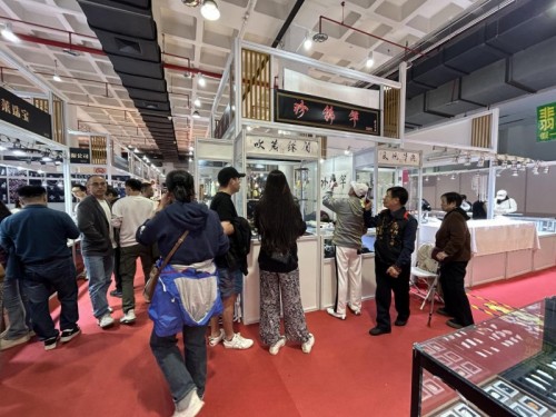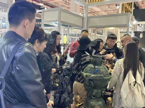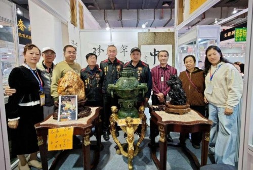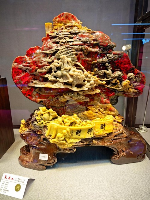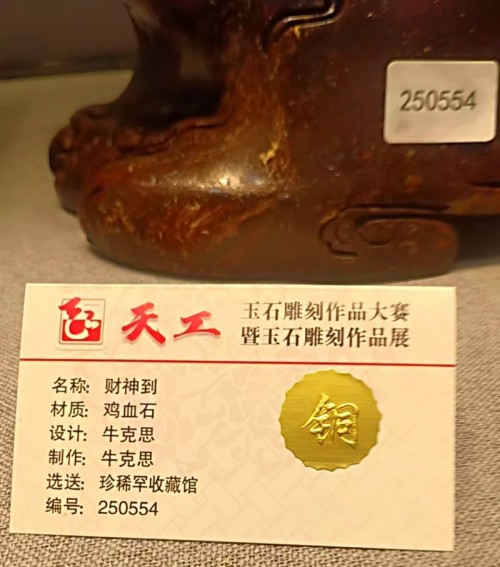 同时,国家级工艺美术大师牛克思历时多年创作的昌化鸡血石雕件《财神到》也成为展会焦点,并荣获2025“天工奖”铜奖。该作品以罕见大体量、高浓度鸡血石料雕琢而成,以其顶级工艺与浓艳血色著称。