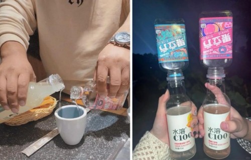 在无数年轻人的自发尝试下,技能果立方几乎和市面上所有主流饮料都能“组CP”,完美实现“一瓶在手,天下我有”的混饮自由: