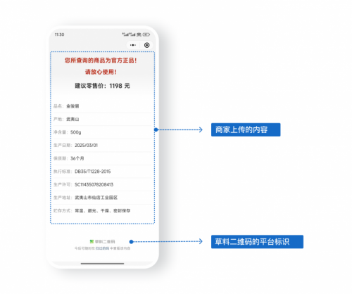 但有些商家为了增加商品的可信度,会在自己制作的二维码页面中,自行添加“正品认证”“防伪查询”“溯源查询”等内容。