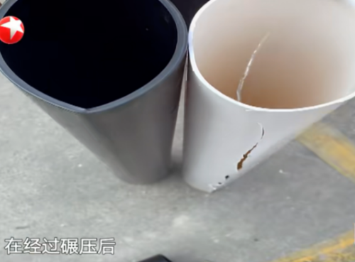 卡车碾压测试中,吉博力HDPE管道无破损开裂vs PVC管道呈开裂状态