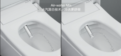 吉博力Spina Square滨娜一体式智能挂厕,提供轻柔的水氧混合冲洗功能,混合了水流与空气的比例,并且通过周期性的7s热水和3s冷水交替冲洗,有效促进血液循环,带来舒适冲洗体验。