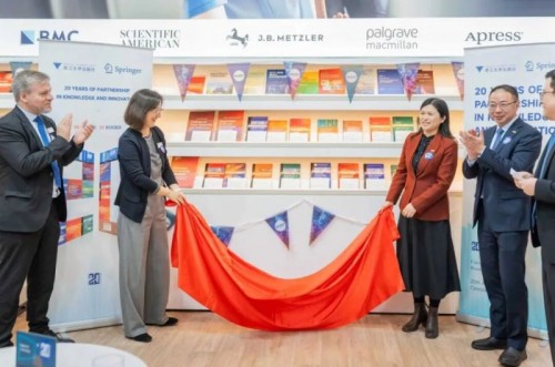 施普林格・自然全球图书负责人及执行副总裁Niels Peter Thomas博士,施普林格・自然中国区图书总监李琰女士,浙江大学出版社党委书记、董事长吴晨,浙江大学出版社总编辑陈洁教授,国际编辑以及学界和媒体代表出席。双方共同揭幕“20年20本书”特别展及合作期刊展,开启以高质量出版推动知识跨文化传播、推动浙江大学及中国学术“国际化”建设的新征程。