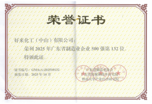 (“广东省制造业企业500强”荣誉证书)