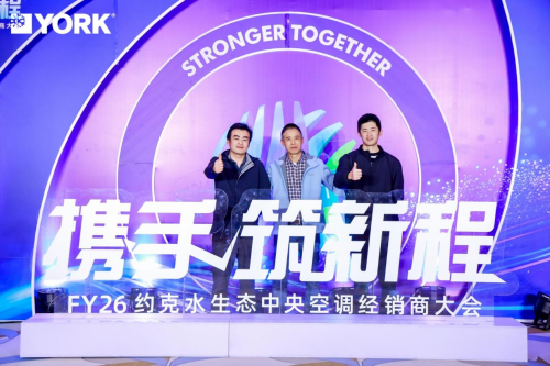 携手筑新程,同心向未来。FY26的战鼓已经擂响,约克水生态中央空调将不断研发创新,为消费者带来更加环保、高效的空调产品,同时与杭嘉湖甬舟五城的经销商伙伴一道,以更绿色的科技、更极致的服务、更坚定的步伐,把健康舒适的空气送进千家万户,共同谱写约克水生态中央空调发展的崭新篇章!