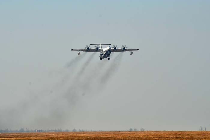 “鲲龙”AG600在珠海金湾机场起飞(2017年12月24日)。 新华社记者梁旭 摄