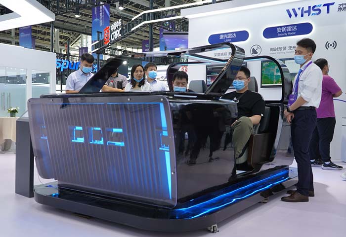 9月7日,参观者体验配备有8块车载雷达设备的森思泰克ADAS智能驾驶辅助系统。 新华社记者金皓原 摄