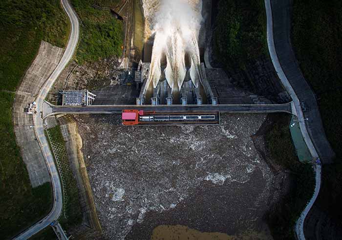 俯瞰大量垃圾漂浮的乐昌峡大坝上游库区(4月13日摄)。 新华社记者刘大伟 摄