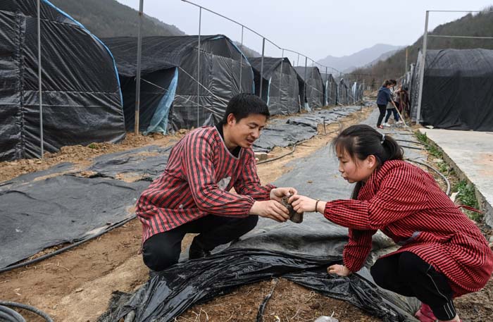目前,刘嘉已建成77个大棚、200平米的实验室,每年向农户提供优质高产量食用菌菌种240万袋,并对所有种植人员进行严格的技术培训指导,带动村民就业53人,人均增收2万元,成为带领乡亲们奔小康的“领头羊”。 新华社记者陶明 摄