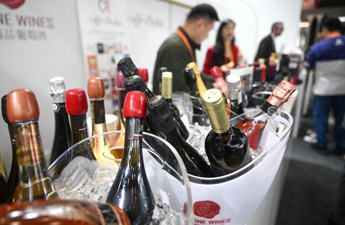 这是消博会意大利企业馆内的葡萄酒(4月11日摄)。 新华社记者蒲晓旭 摄
