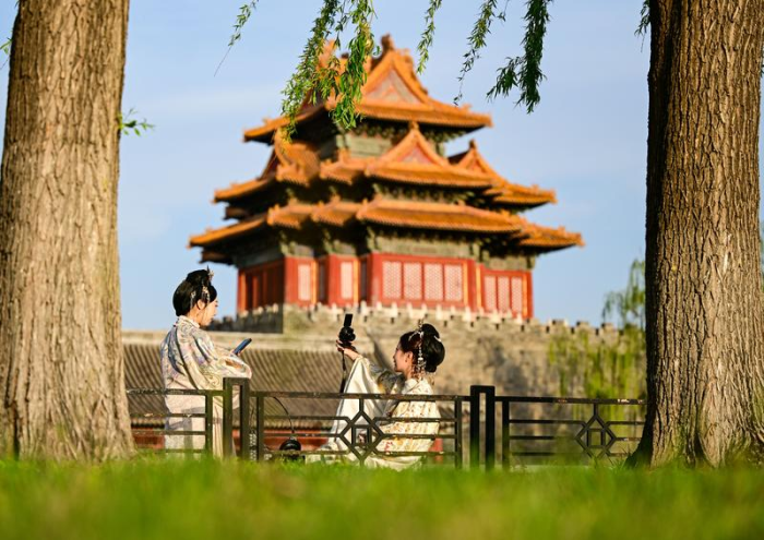 4月11日,游人在北京故宫西北角楼附近拍照。新华社记者陈晔华 摄