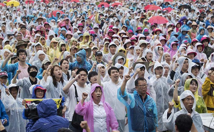 | 标签:韩国;民众;冒雨;大规模;示威;时事 | 打印