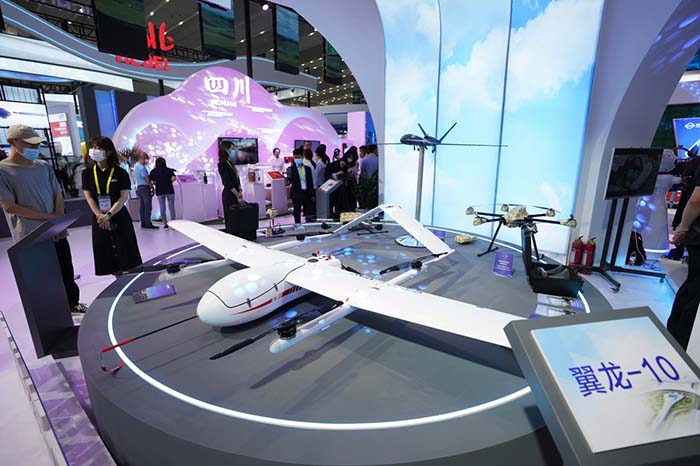 5月11日,观众在参观展出的一款无人机产品。 新华社记者张博文 摄