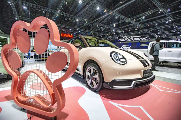 这是3月27日在泰国曼谷国际车展上拍摄的欧拉好猫汽车。新华社记者 王腾摄