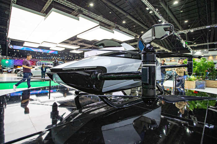 3月27日,观众在泰国曼谷国际车展上参观小鹏汇天旅航者X2飞行汽车。新华社记者 王腾摄