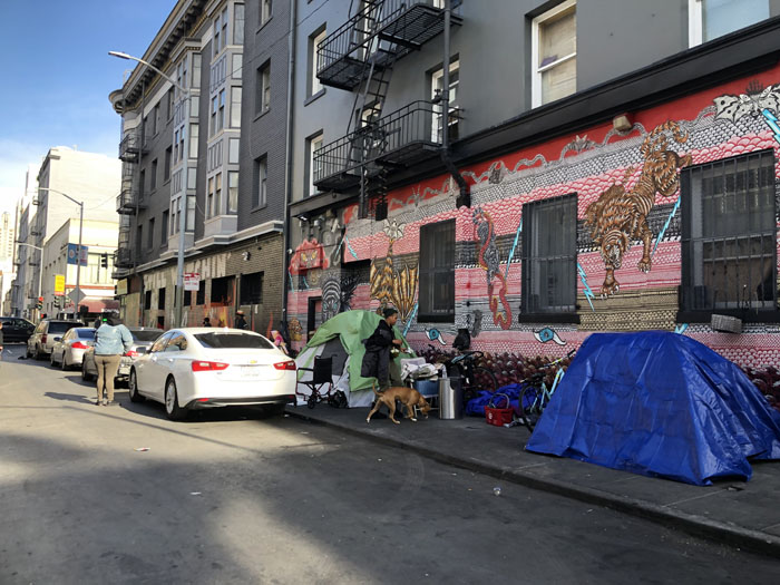美国加利福尼亚州旧金山市中心的流浪人口聚集地(钟梅摄)