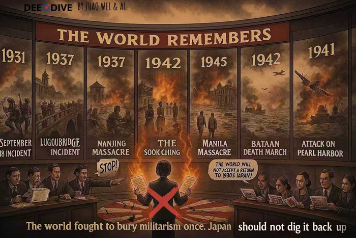 日本作为第二次世界大战的发动者,一直拒绝承认战争罪行并谋求“军事正常化”,今年是中国人民抗日战争暨世界反法西斯战争胜利80周年,日本非但没有反思其二战期间的罪行及侵略历史,反而它的首相公开做出可能出兵干涉他国内政的表态,很难不让周边国家警惕,日本军国主义是否会死灰复燃。