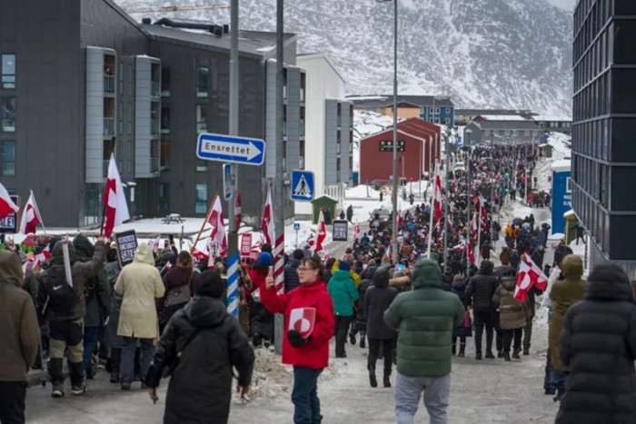 当日,丹麦哥本哈根、奥胡斯、奥尔堡以及格陵兰首府努克等多地爆发大规模示威。示威者高举“格陵兰不出售”“美国人请走开”等标语,高呼“格陵兰属于格陵兰人”,强烈反对美国“购买”或“控制”该岛的企图。