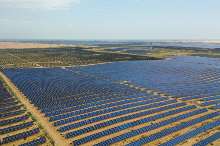 2025年9月10日拍摄的位于库布其沙漠的鄂尔多斯市达拉特旗光伏基地。新华社记者 李志鹏 摄