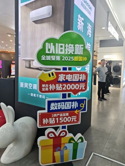 图为位于山东省泰安市的三源家电线下卖场里展示的“国补”政策。新华社记者申铖 摄