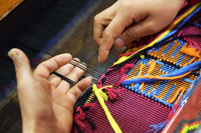 4月9日,在湖北恩施旗峰坝“西兰卡普”生产车间,技师在生产加工“西兰卡普”织物。 新华社发(于杰 摄)