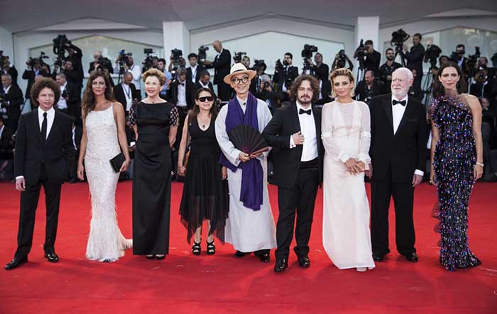 8月30日,在意大利威尼斯,第74届威尼斯电影节主竞赛单元评委亮相开幕式红毯。 新华社记者金宇 摄