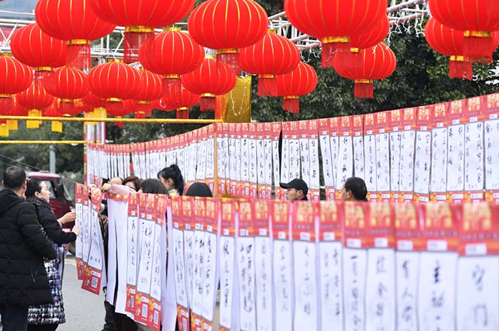 2月19日,人们在湖北宣恩县人民广场猜灯谜。