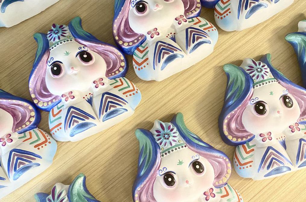 图为吉兔坊设计的“山海经”系列摆件——旄牛,是山神的化身,能够给人带来福祉、净化心灵,寓意为“前程似锦、财运亨通、学业有成、诸事顺遂”。(王若涵摄)