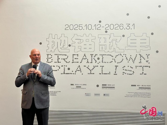 10月12日,值瑞士与中国建交75周年暨中瑞文化和旅游年之际,由瑞士驻华大使馆与北京中间美术馆共同主办的“抛锚歌单”中瑞当代艺术展今天在中间美术馆隆重启幕。瑞士驻华大使白瑞谊(Jürg Burri)与中间美术馆馆长卢迎华出席开幕式并致辞。