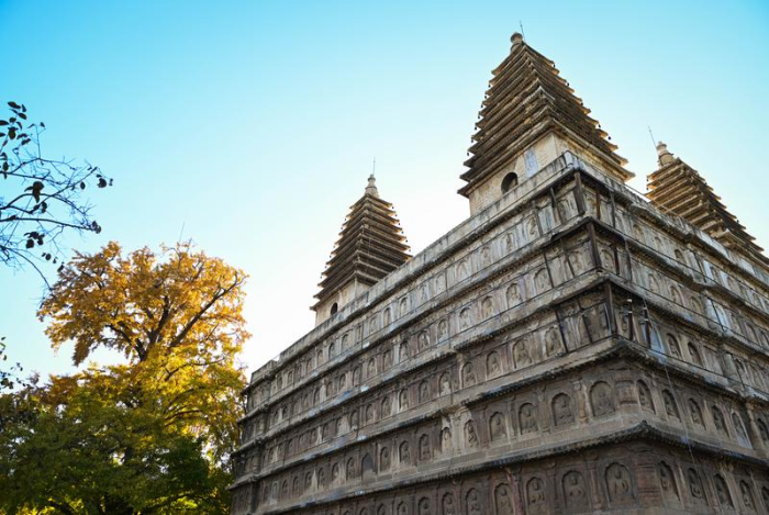 金刚宝座塔与泛黄的银杏树相映成趣(10月26日摄)。新华社记者 陈钟昊 摄