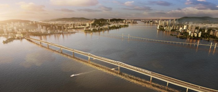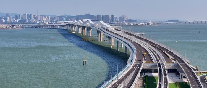 最初开始搜索“澳门大桥”的时候,很快就被吸引住了——它很漂亮,的确很漂亮,极具未来感的漂亮。白色、轻薄的桥身像是被拉伸过一样,顺着海面铺展开,波浪状的曲线让整座桥看起来不像一条“路”,更像是一条在海面上被放大过细节的海浪,结构简约得几乎没有多余的表达。
