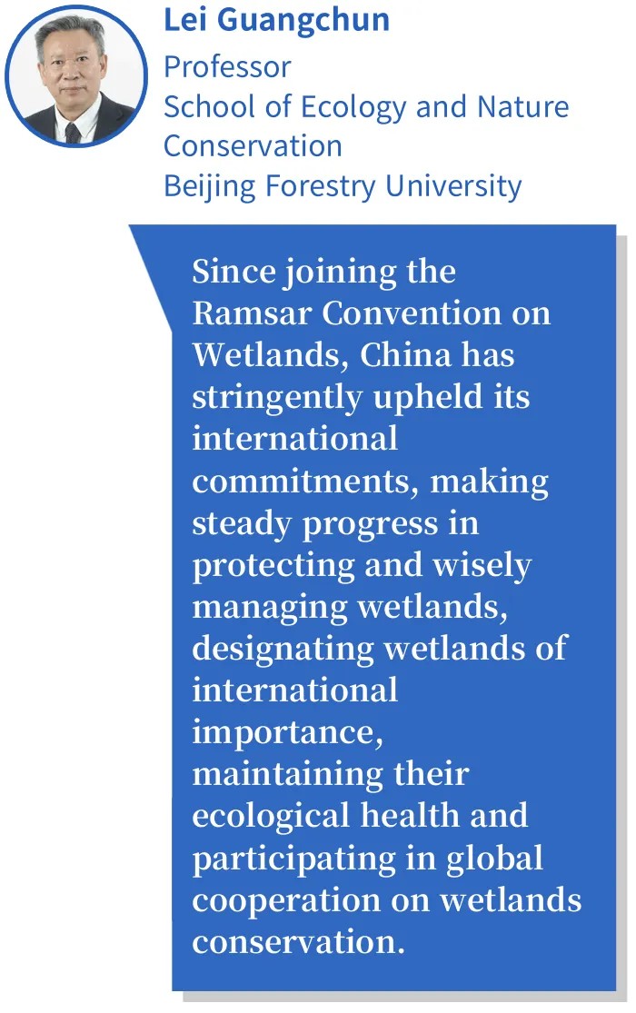 湿地保护是国际社会的共同关切。2025年,在《湿地公约》第十五届缔约方大会上,中国新增9个“国际湿地城市”,总数达22个,居全球第一。多年来,中国积极参与全球湿地保护与恢复合作,为世界持续贡献中国智慧和中国力量。