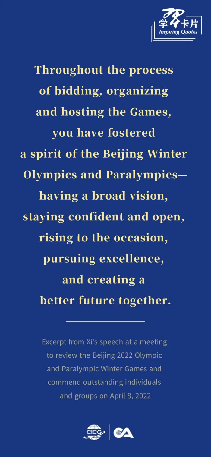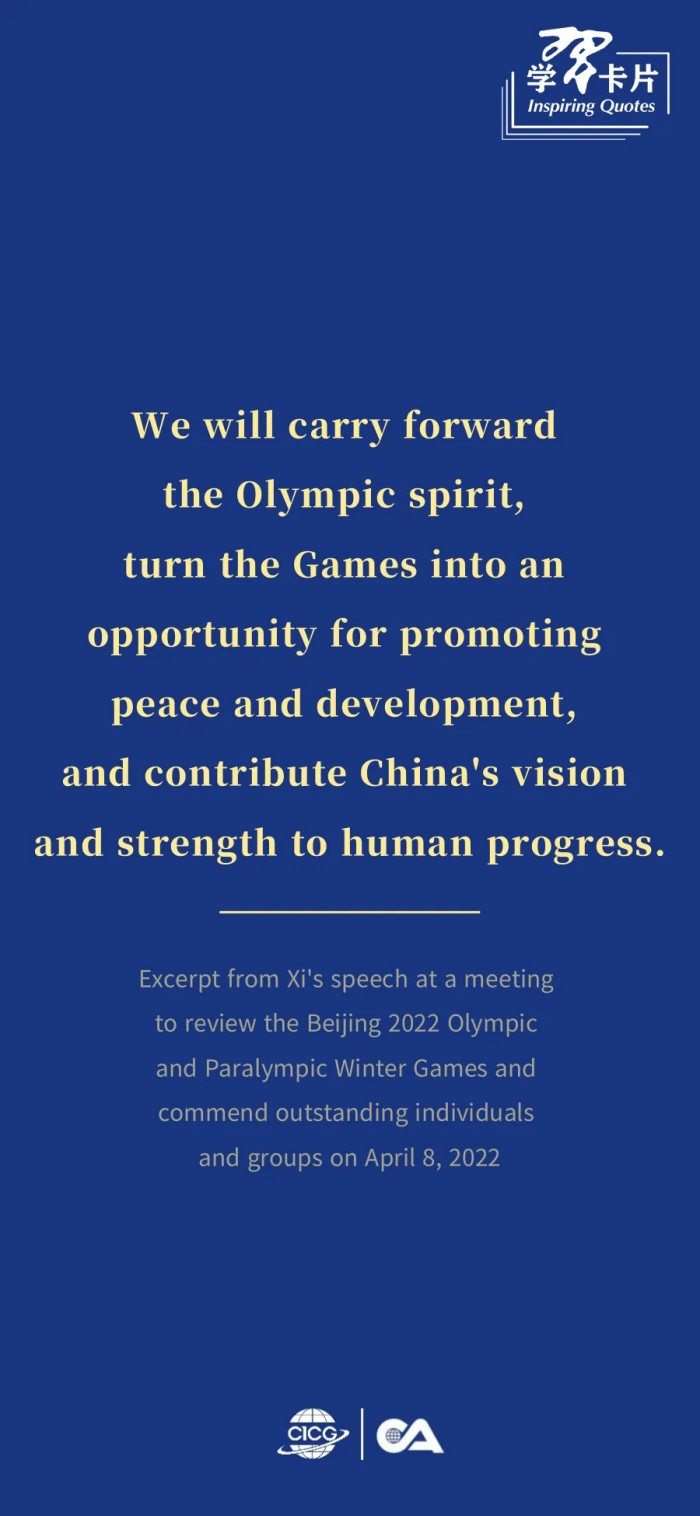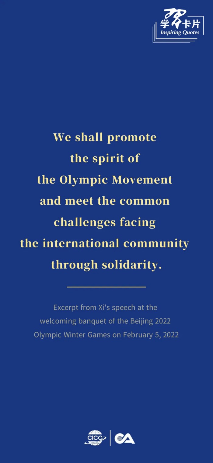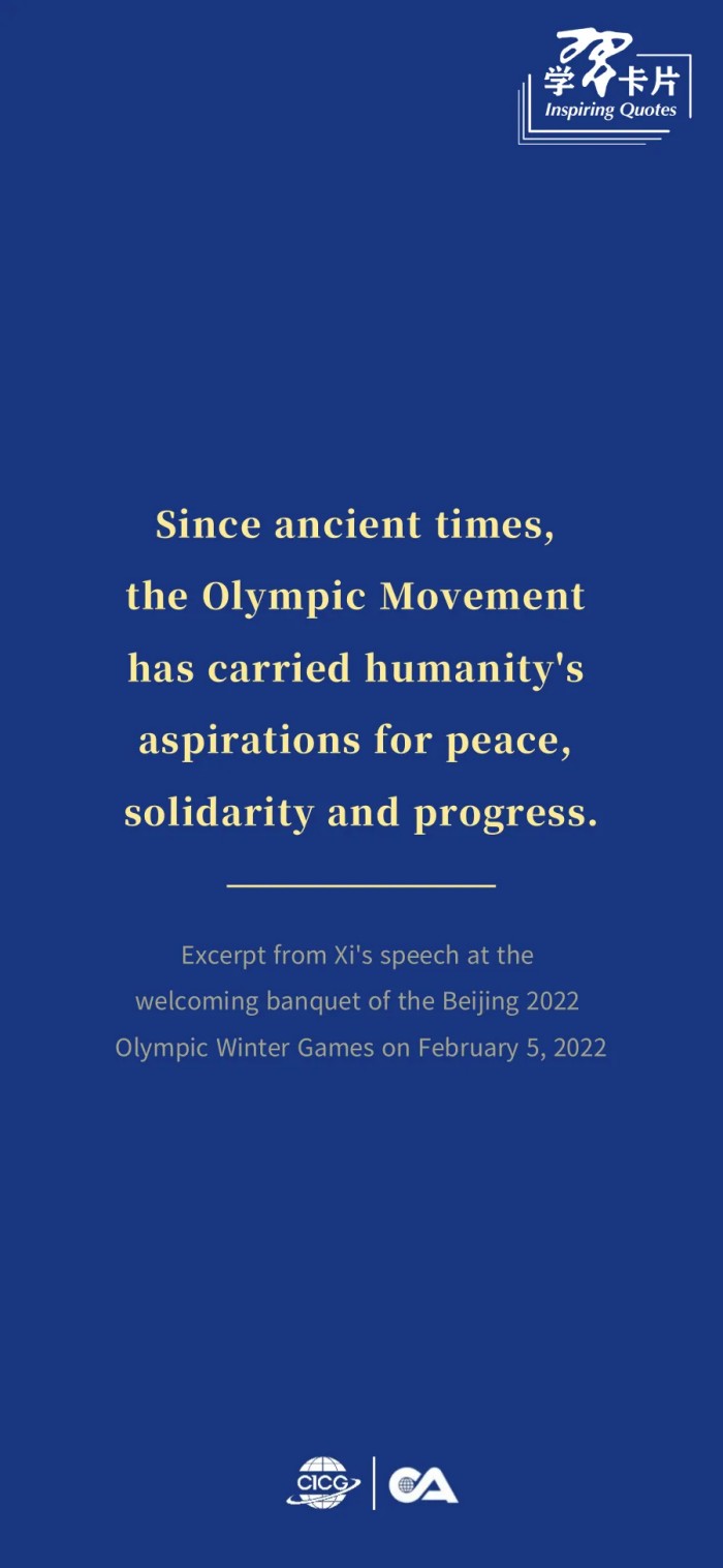 第25届冬季奥林匹克运动会将于当地时间2月6日至22日在意大利米兰和科尔蒂纳丹佩佐举行。来自世界各地的运动健儿将齐聚冰雪赛场,在激烈角逐中诠释奥林匹克精神,展现人类拼搏进取的体育风采。让我们进入今天的学习卡片,通过学习习近平总书记的重要论述,深入领会冬奥精神的时代内涵。